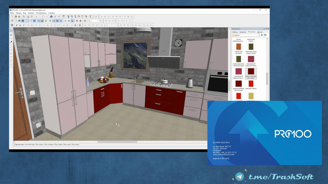 PRO100 + профессиональная библиотека - программа, специально созданная для мебельной промышленности. Программа для дизайнеров интерьера, конструкторов, сборщиков мебели - все они профессионально участвуют в процессе разработки и производства интерьера и мебели. От кухни, ванной комнаты, гардеробных, библиотек, помещений, офисов, до магазинов и ресторанов.
