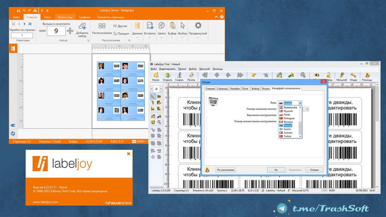 Labeljoy — программа, для создания и печати визиток, этикеток, конвертов, бейджей, карточек, писем с созданием QR-кодов и штрих-кодов.