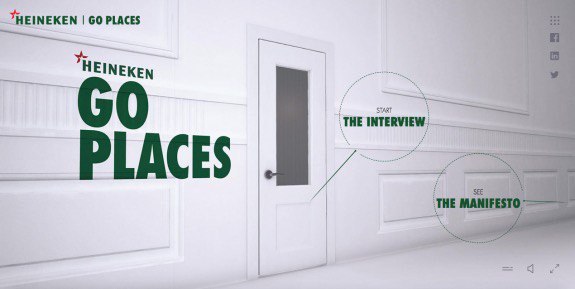 В 2016 году Heineken запустил интерактивную HR кампанию. На сайте https://vk.cc/90us8J соискатели должны были ответить на 12 вопросов в течение 3-5 секунд. В результате создавался личный профиль, который необходимо было отправить вместе с резюме на страницу бренда в LinkedIn. Сайт «Go Places», который создавался полтора года, также тонко подмечал местоположения соискателя, отдавая дань вниманию Heineken к деталям. На днях была запущена версия 2.0 с целью привлечь динамичных сотрудников, разбирающихся в цифровых технологиях.
