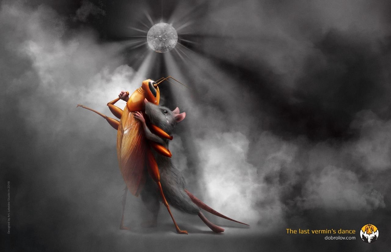 В студии Артемия Лебедева представили рекламу средства от грызунов и тараканов компании "Добролов". Прощальный танец.