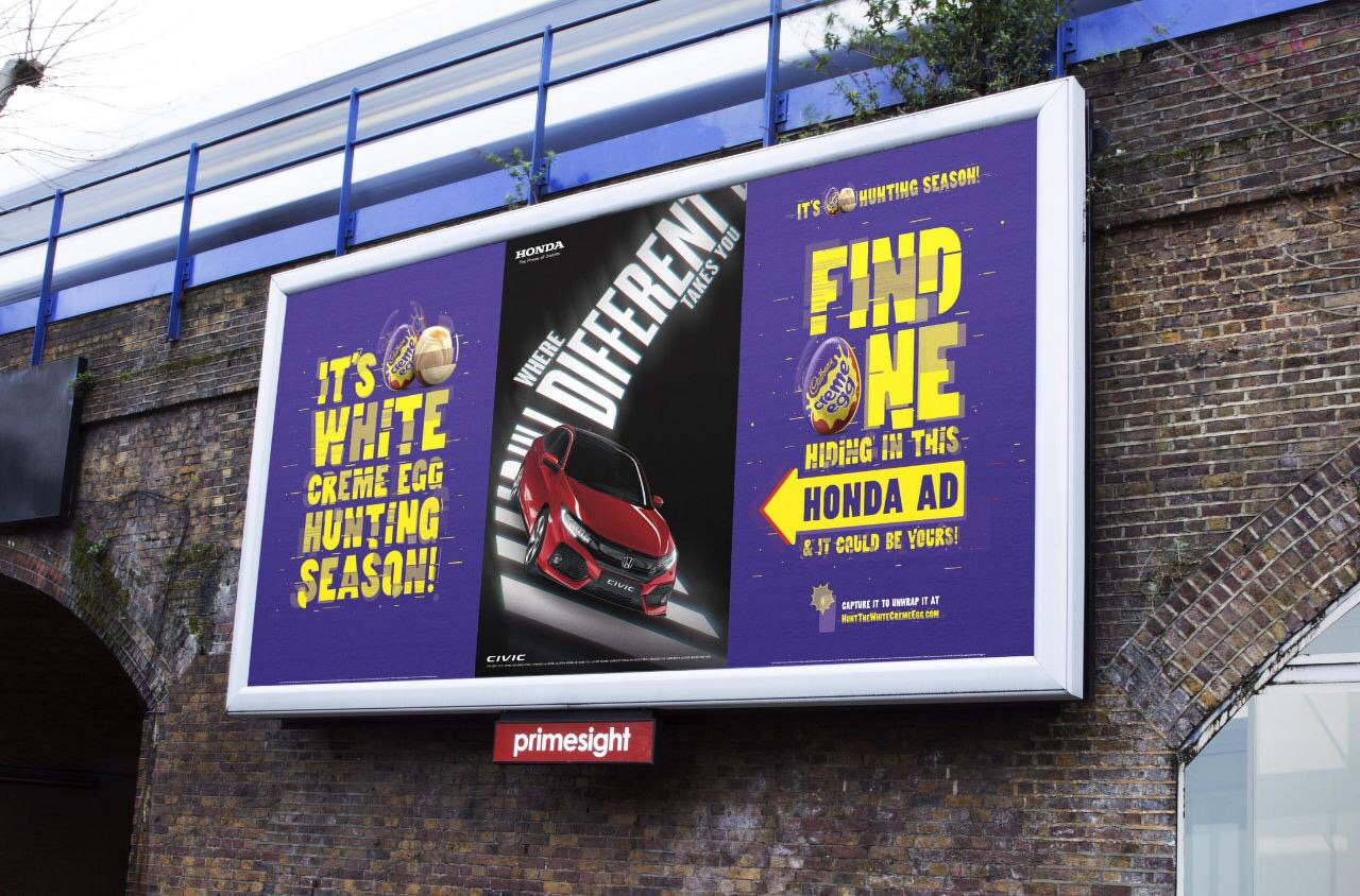 Кейс: В предверии Пасхи, в Cadbury Creme Egg (в партнёрстве с крупнейшими брендами Великобритании и креативным агентством ELVIS) запустили акцию на станции Waterloo в Лондоне. В течение последующих двух недель любой прохожий может поучаствовать в поиске пасхального яйца. Оно спрятано за рекламой таких брендов как Heinz, Google, Honda, Knorr, Tesco, LADBible и Benefit Cosmetics. Множество сопутствующих подсказок и партнёрской рекламы - преодолев эти трудности, победитель получит 10 000 фунтов стерлингов.