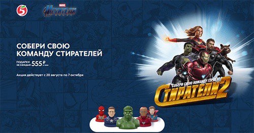 В период проведения акции во всех магазинах торговой сети «Пятёрочка» за каждые 555 рублей в чеке или за покупку товаров партнёров акции гости всех магазинов торговой сети «Пятёрочка» получают в подарок игрушку-штамп в виде одного из супергероев MARVEL. Супергерои мегапопулярны, но не менее успешны кросс-промо с их участием, во многом за счёт мощной эмоциональной составляющей. В прошлом году «Пятёрочка» по франшизе MARVEL запустила акцию «Стиратели». Она проходила в более чем 13 тыс. магазинов торговой сети и продемонстрировала высокую вовлеченность: каждый десятый покупатель получил в подарок ластик в виде супергероя.
