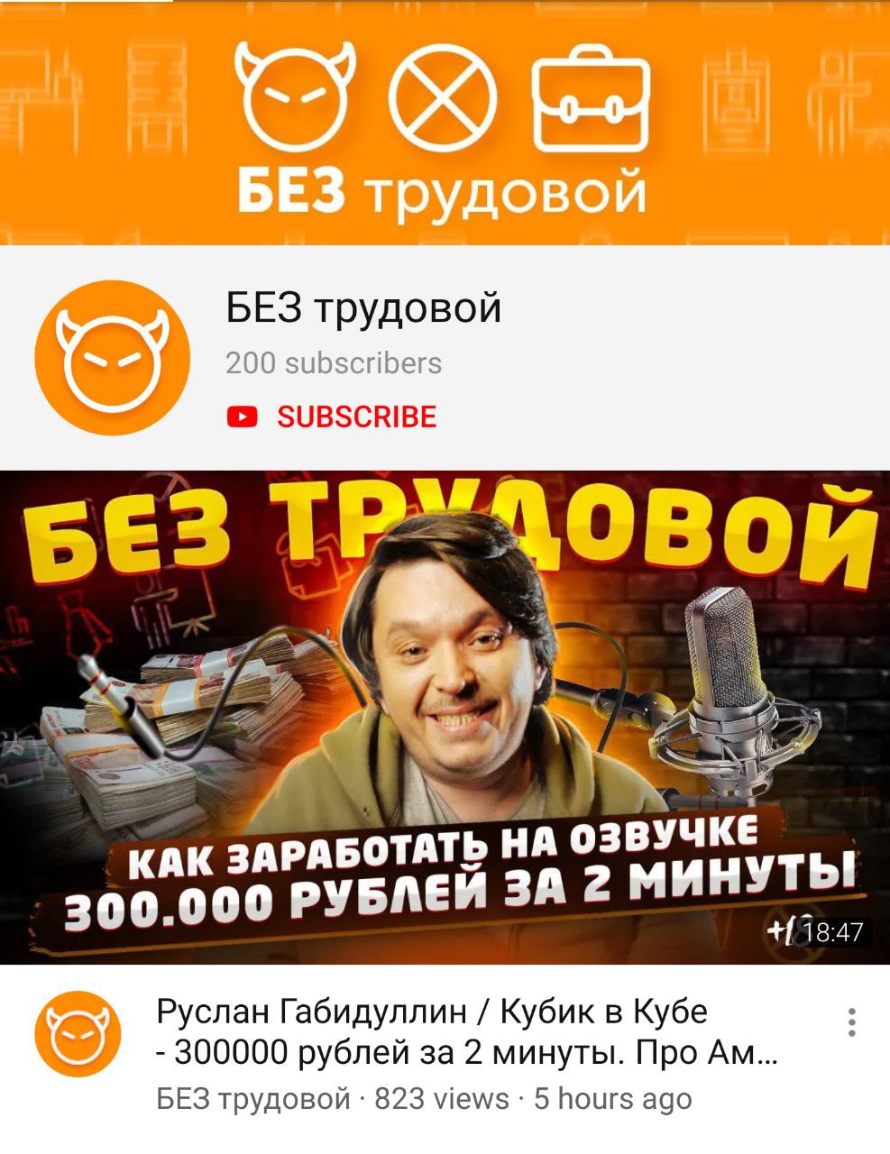 Первый герой канала – основатель студии «Кубик в кубе» Руслан Габидуллин. В премьерном ролике он рассказывает о работе «на дядю» в репертуарном театре, о том, как решил начать заниматься озвучкой, первых заказах и пути к успеху. Во втором ролике свою историю рассказывает 20-летний Артем из небольшого российского города. Артем продает скины на Stream и торгует криптовалютами. В данный момент он учится на экономическом факультете, но стартовая зарплата по специальности в его городе составляет не больше 15 тыс. рублей. Занимаясь своим делом, Артем зарабатывает в среднем 40-60 тысяч в месяц.