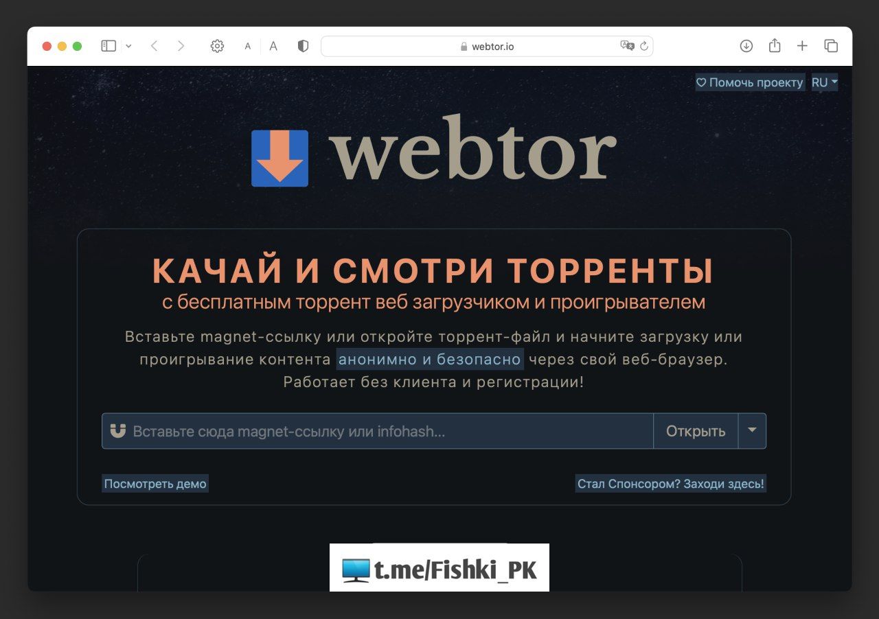Webtor предоставляет онлайн доступ к содержимому любого торрент файла. Конечно, если есть доступные пиры. Контент можно не только скачать, но и сразу просмотреть.