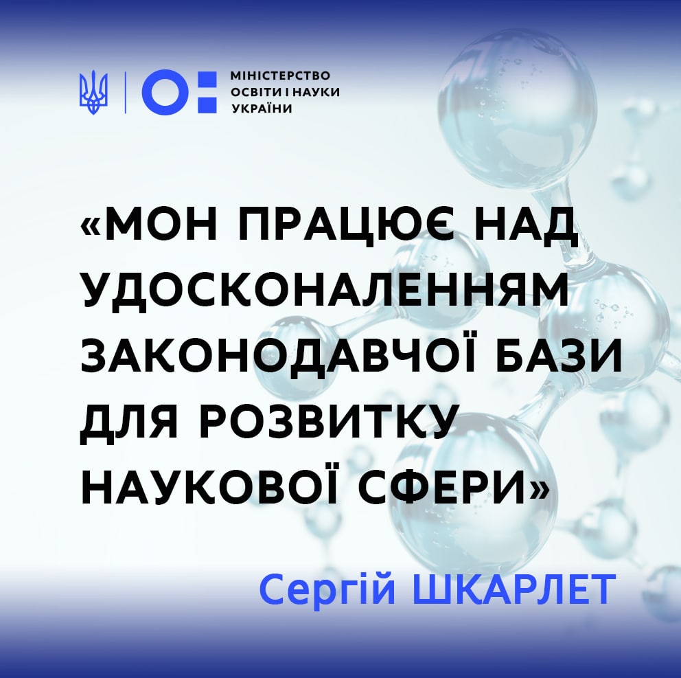 Необхідно розробити законодавство, яке б зміцнювало ланцюг «освіта – наука – інновації – економіка». На цьому наголосив Міністр освіти і науки України Сергій Шкарлет під час засідання Національної ради з питань розвитку науки і технологій сьогодні, 12 січня 2021 року.
