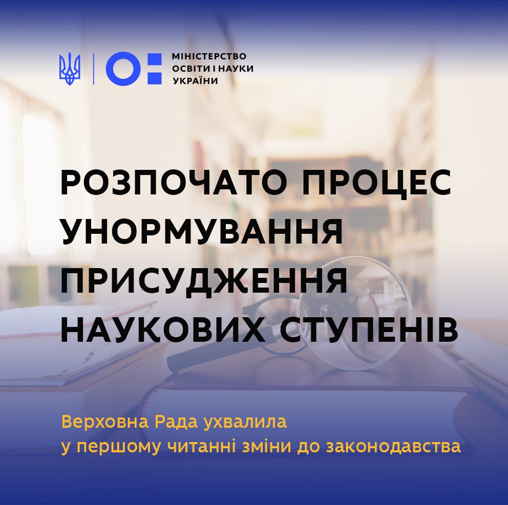 Сьогодні, 17 лютого 2021 року, Верховна Рада України підтримала у першому читанні проєкт Закону про внесення змін до деяких Законів України щодо присудження наукових ступенів (реєстраційний № 4667-1 від 15.02.2021 р.).