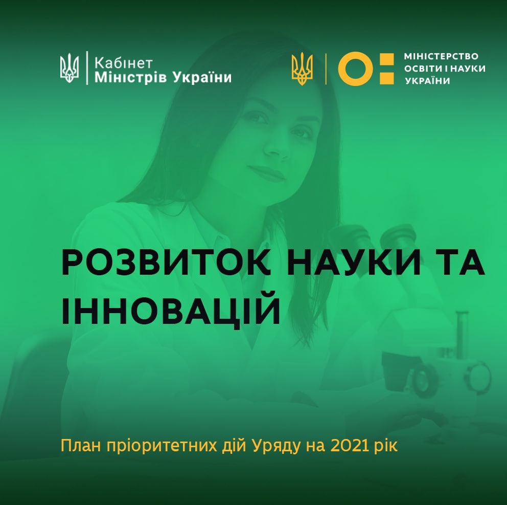 «Основні кроки МОН у сфері науки та технологій на 2021 рік – це насамперед удосконалення нормативно-правових актів – розроблення проєкту Закону України "Про внесення змін до Закону України "Про наукову і науково-технічну експертизу", "Про інноваційні парки", "Про підтримку та розвиток інноваційної діяльності" та законопроєкту щодо врегулювання питань, пов’язаних з функціонуванням Національного фонду досліджень», – зазначив Міністр освіти і науки України Сергій Шкарлет.