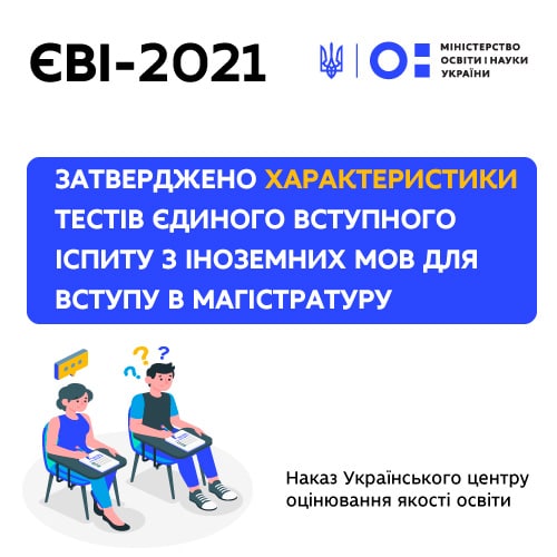 З метою належної організації процесу розроблення та конструювання екзаменаційних робіт єдиного вступного іспиту у формі предметних тестів з англійської, іспанської, німецької та французької мов та своєчасного інформування учасників ЄВІ для вступу на другий (магістерський) рівень вищої освіти, Українським центром оцінювання якості освіти затверджено характеристики тестів єдиного вступного іспиту (ЄВІ).
