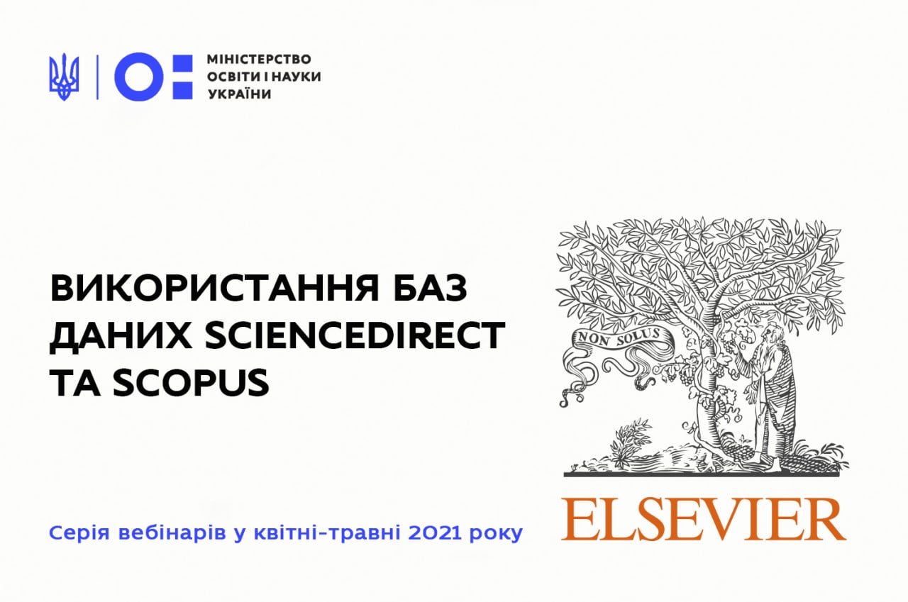 Вебінари будуть присвячені питанням взаємодії з базами даних ScienceDirect та Scopus, висвітлюватимуть процедури відбору та критерії, за якими здійснюється відбір видань для індексування, роботу з профілями вчених та установ у Scopus, можливості використання аналітичного інструмента SciVal для пошуку грантів і оцінювання діяльності вчених та установ.