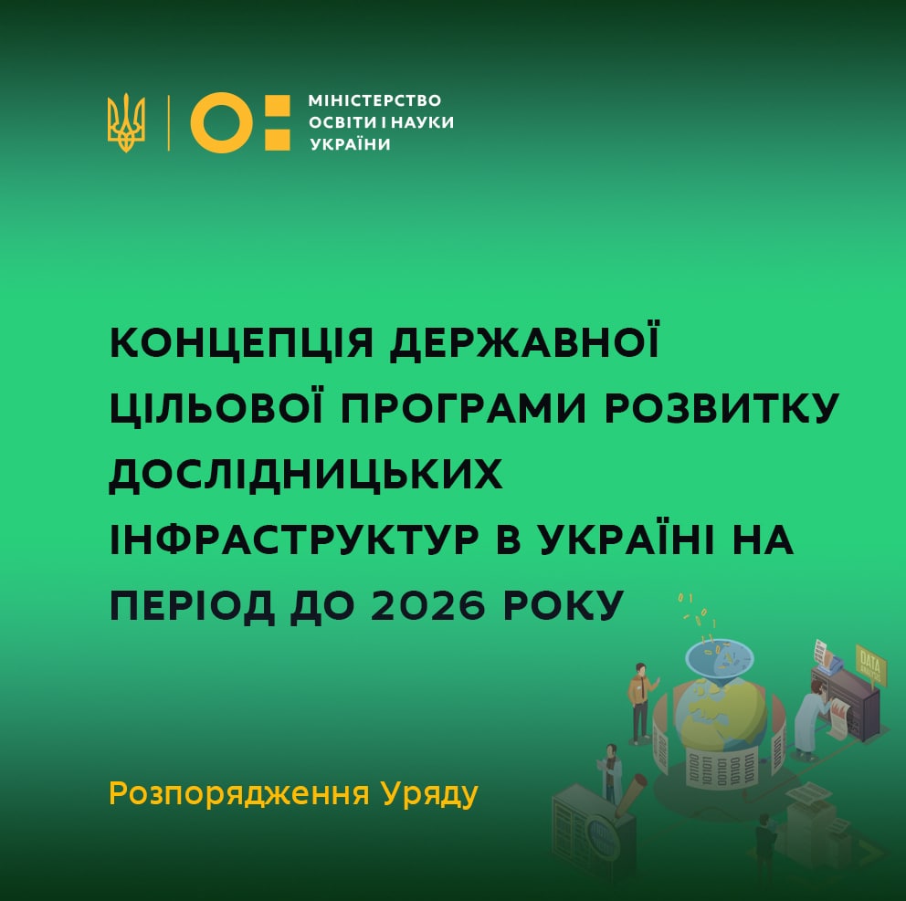 Для створення необхідних організаційних, правових та фінансових передумов для розвитку системи дослідницьких інфраструктур в Україні, підвищення їхньої конкурентоспроможності, а також розвитку наукової та інноваційної сфери в частині доступу вчених до передових дослідницьких інфраструктур в ЄС Уряд схвалив Концепцію Державної цільової програми розвитку дослідницьких інфраструктур в Україні на період до 2026 року.