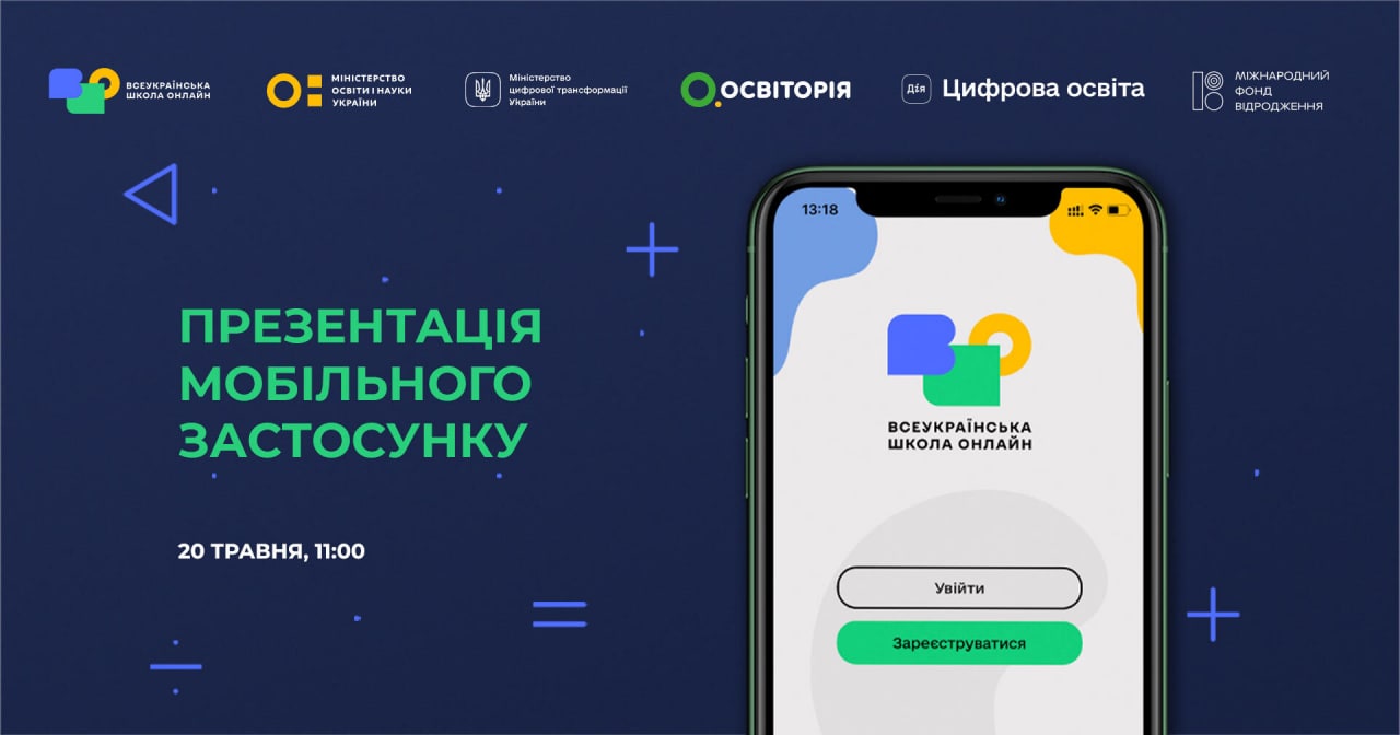 У четвер, 20 травня 2021 року, Міністерство освіти і науки, Міністерство цифрової трансформації та ГС «Освіторія» презентуватимуть мобільний застосунок «Всеукраїнська школа онлайн».