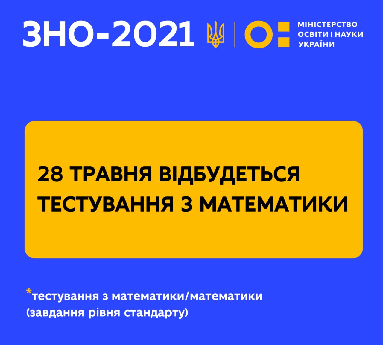 У п’ятницю, 28 травня 2021 року, відбудеться ЗНО з математики/математики (завдання рівня стандарту).