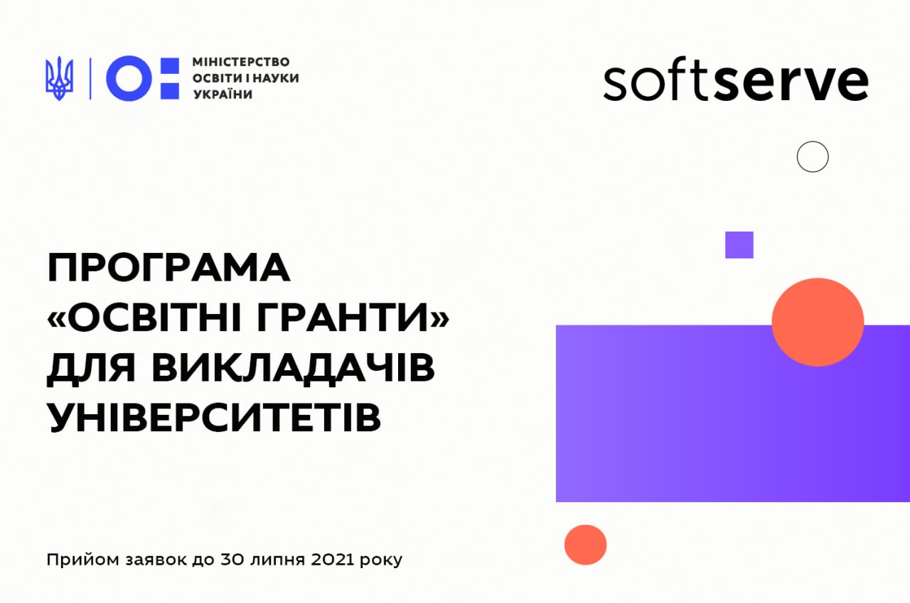 До 30 липня 2021 року триває прийом заявок для участі в програмі від ІТ-компанії SoftServe для викладачів університетів «Освітні гранти».