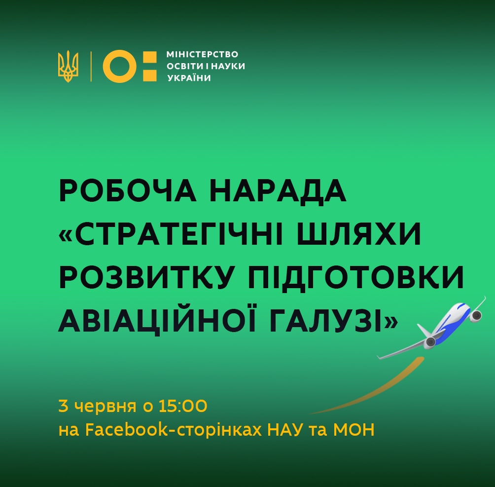 📢 У четвер, 3 червня 2021 року, під головуванням Міністра освіти і науки України Сергія Шкарлета в Національному авіаційному університеті відбудеться спільна робоча нарада «Стратегічні шляхи розвитку підготовки фахівців авіаційної галузі». У межах заходу заплановано підписання низки документів, зокрема меморандумів про співпрацю.