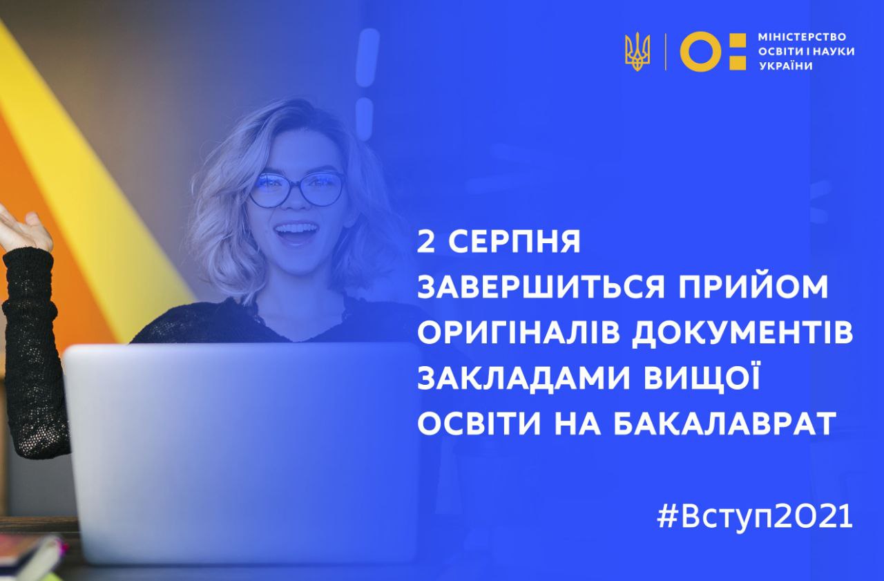 У понеділок, 2 серпня, о 18:00 завершиться прийом оригіналів документів закладами вищої освіти від вступників на бакалавра чи наскрізного магістра.