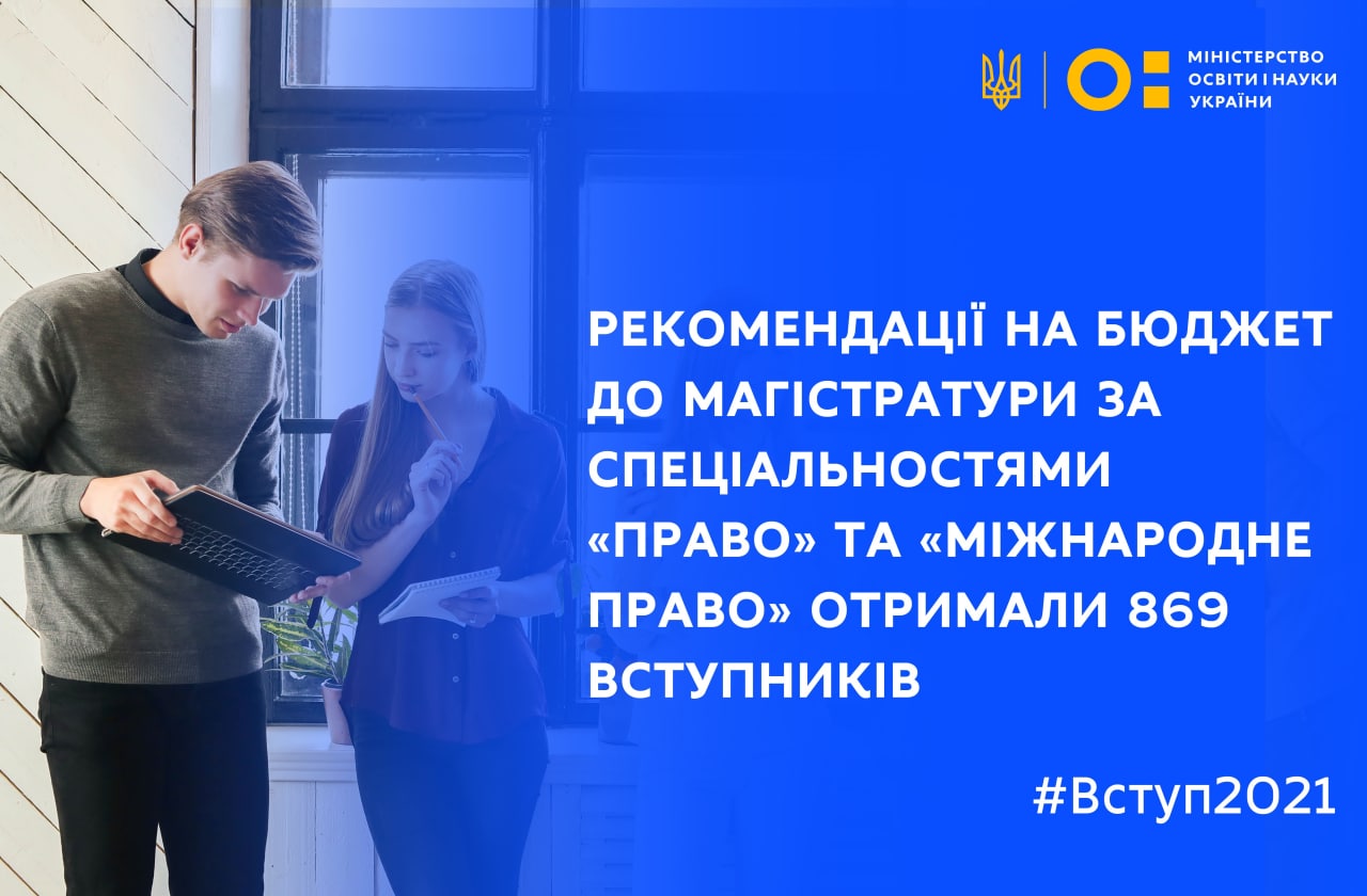 Сьогодні, 2 серпня 2021 року, 869 вступників до магістратури за спеціальностями «Право» та «Міжнародне право» отримали рекомендації для зарахування на бюджет. Розподіл місць відбувся за алгоритмом адресного розміщення державного та регіонального замовлення.