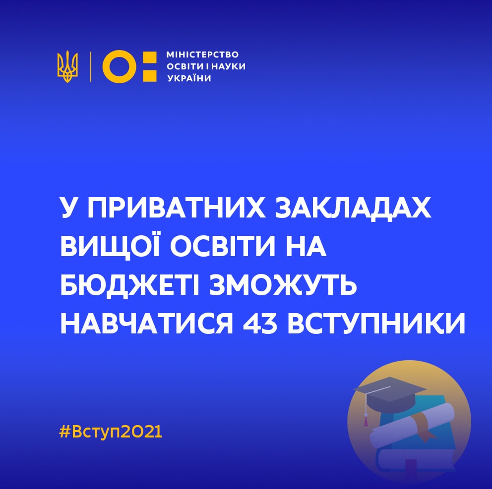 ✏️ У приватних закладах вищої освіти на бюджеті зможуть навчатися 43 вступники 👉 bit.ly/3yeb80Z