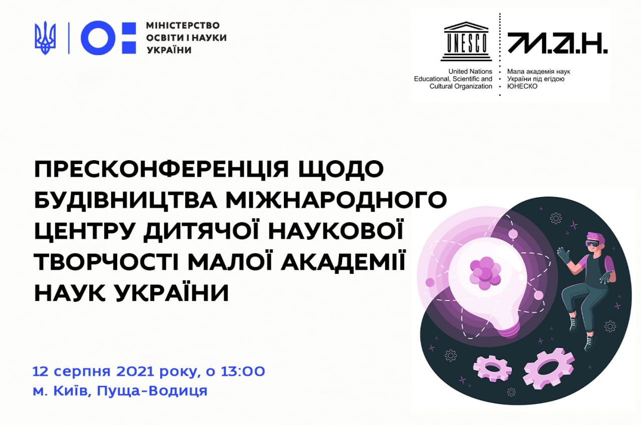 📣 У четвер, 12 серпня 2021 року, відбудеться урочисте закладання капсули часу з посланням від Президента України до майбутніх поколінь у Пущі-Водиці в м. Київ. Капсулу часу закладимуть на місці будівництва першого в Україні Міжнародного центру дитячої наукової творчості Малої академії наук.