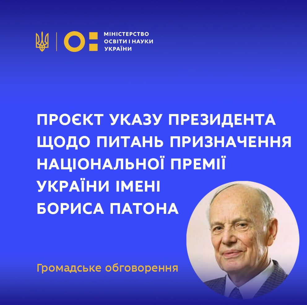 Навесні цього року Президент України Володимир Зеленський підписав Закон «Про внесення змін до статті 11 Закону України «Про державні нагороди України» № 1399-ІХ. На виконання цього Закону розроблено проєкт Указу «Питання Національної премії України імені Бориса Патона та підвищення ефективності підтримки наукової та науково-технічної діяльності молодих вчених».