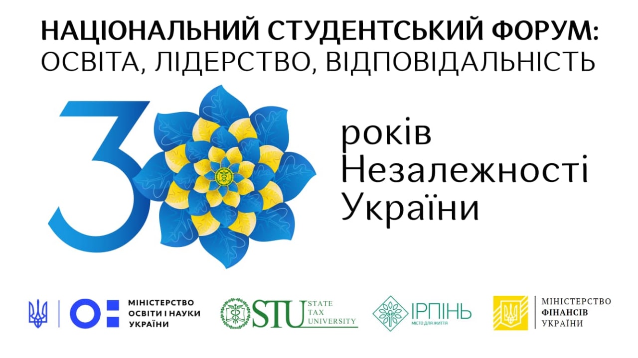 📣 20-21 серпня 2021 року в м. Ірпінь Київської області відбудеться Національний студентський форум: освіта, лідерство, відповідальність. Проведення Форуму присвячено відзначенню 30-тій річниці Незалежності України. Захід проходитиме на базі Університету державної фіскальної служби України.