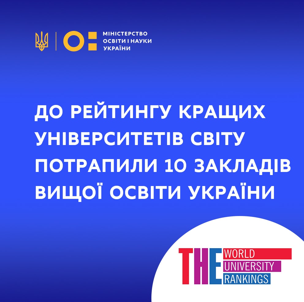 Десять закладів вищої освіти України потрапили до щорічного рейтингу кращих університетів світу, який опублікував Журнал Times Higher Education.