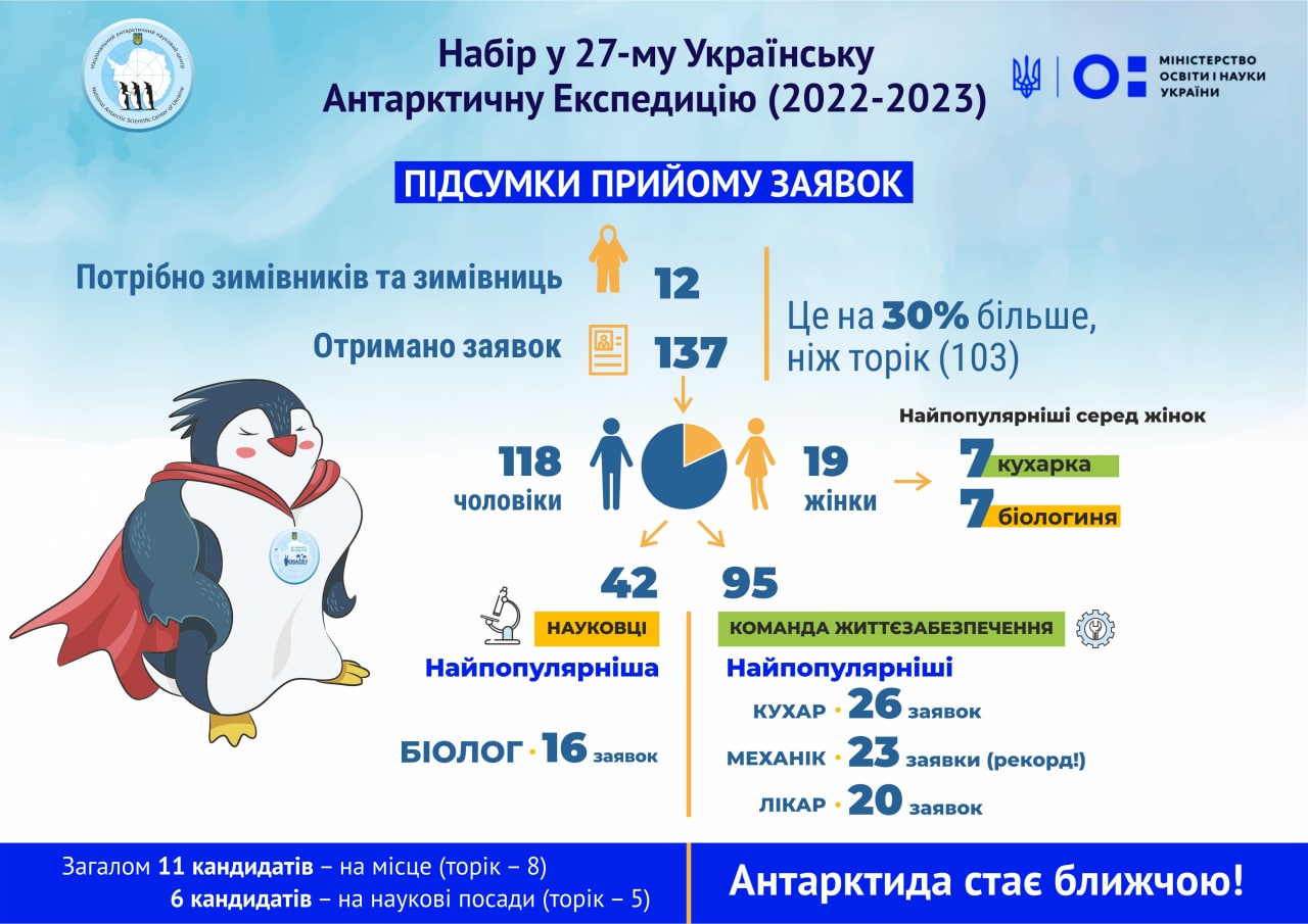 Цього року охочих працювати в зимовій експедиції на станції "Академік Вернадський" стало більше на 30%. Про це розповів директор Національного антарктичного наукового центру (НАНЦ) Євген Дикий сьогодні, 14 вересня 2021 року, коментуючи підсумки прийому заявок у 27-му Українську антарктичну експедицію.