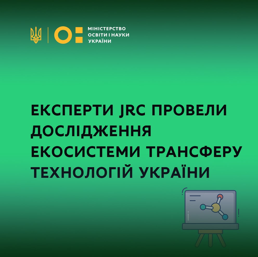 На офіційному сайті МОН оприлюднено звіт дослідження екосистеми трансферу технологій України. Дослідження проводилось в Україні, Вірменії, Азербайджані, Білорусі, Грузії, Республіці Молдова, Алжирі, Єгипті, Йорданії, Лівані, Марокко і Тунісі експертами Об’єднаного дослідницького центру ЄС JRC.
