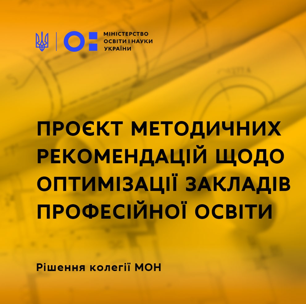 МОН розробило проєкт Методичних рекомендацій, за якими відбуватиметься ефективна оптимізація мережі закладів професійної освіти. Вони містять чіткі та зрозумілі критерії, які допоможуть оцінити стан мережі та спрямувати ресурси на перспективні заклади. 21 вересня 2021 року Колегія Міністерства освіти і науки схвалила цей документ.