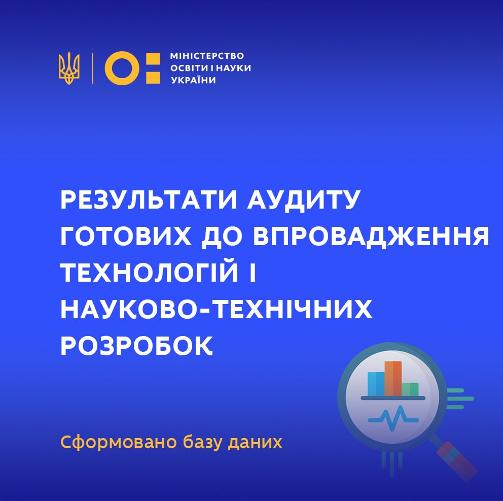 На офіційному сайті МОН опубліковано результати аудиту готових до впровадження технологій і науково-технічних (експериментальних) розробок, створених закладами вищої освіти України, науковими установами, підприємствами, установами та організаціями, які перебувають у сфері їх управління, проведеного спільно з іншими міністерствами, відомствами та національними академіями наук.