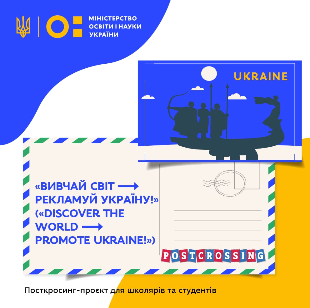 Міністерство освіти і науки України започатковує посткросинг-проєкт під назвою «Вивчай світ → рекламуй Україну!» («Discover the world → promote Ukraine!»).
