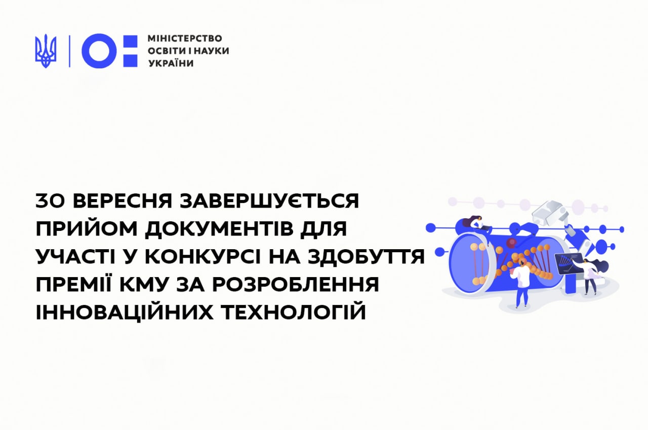 30 вересня завершується прийом документів для участі в конкурсі на здобуття Премії Кабінету Міністрів України за розроблення інноваційних технологій.