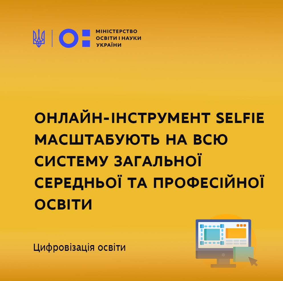 Онлайн-інструмент SELFIE планують масштабувати на всю систему загальної середньої та професійної освіти. У кожному регіоні вже визначили координаторів, які будуть організовувати опитування закладів освіти.