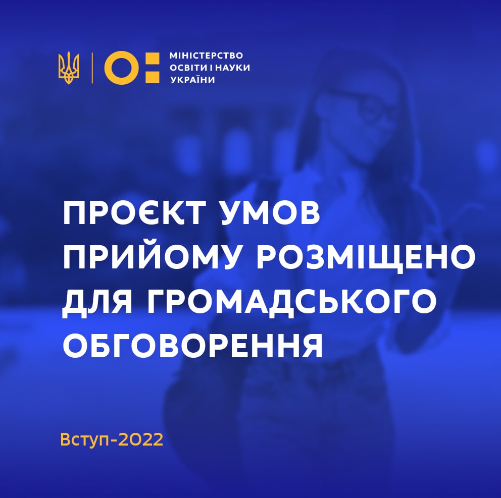 📢 Сьогодні, 27 вересня 2021 року, на сайті МОН розміщено для громадського обговорення проєкт Умов прийому на навчання для здобуття вищої освіти на 2022 рік.