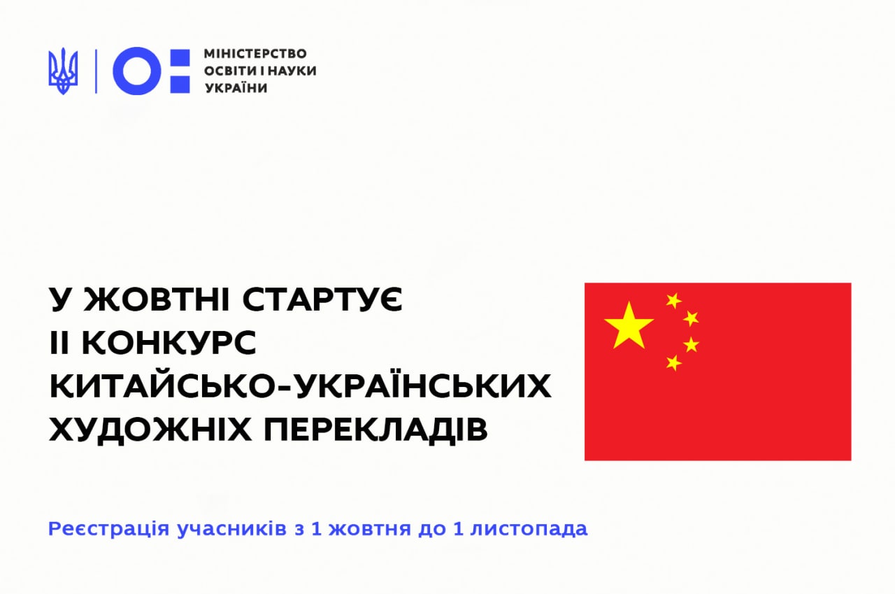 З 1 жовтня до 1 листопада відбудеться ІІ Всеукраїнський конкурс українсько-китайських художніх перекладів, присвячений 10-й річниці встановлення відносин стратегічного партнерства між Україною та Китайською Народною Республікою.