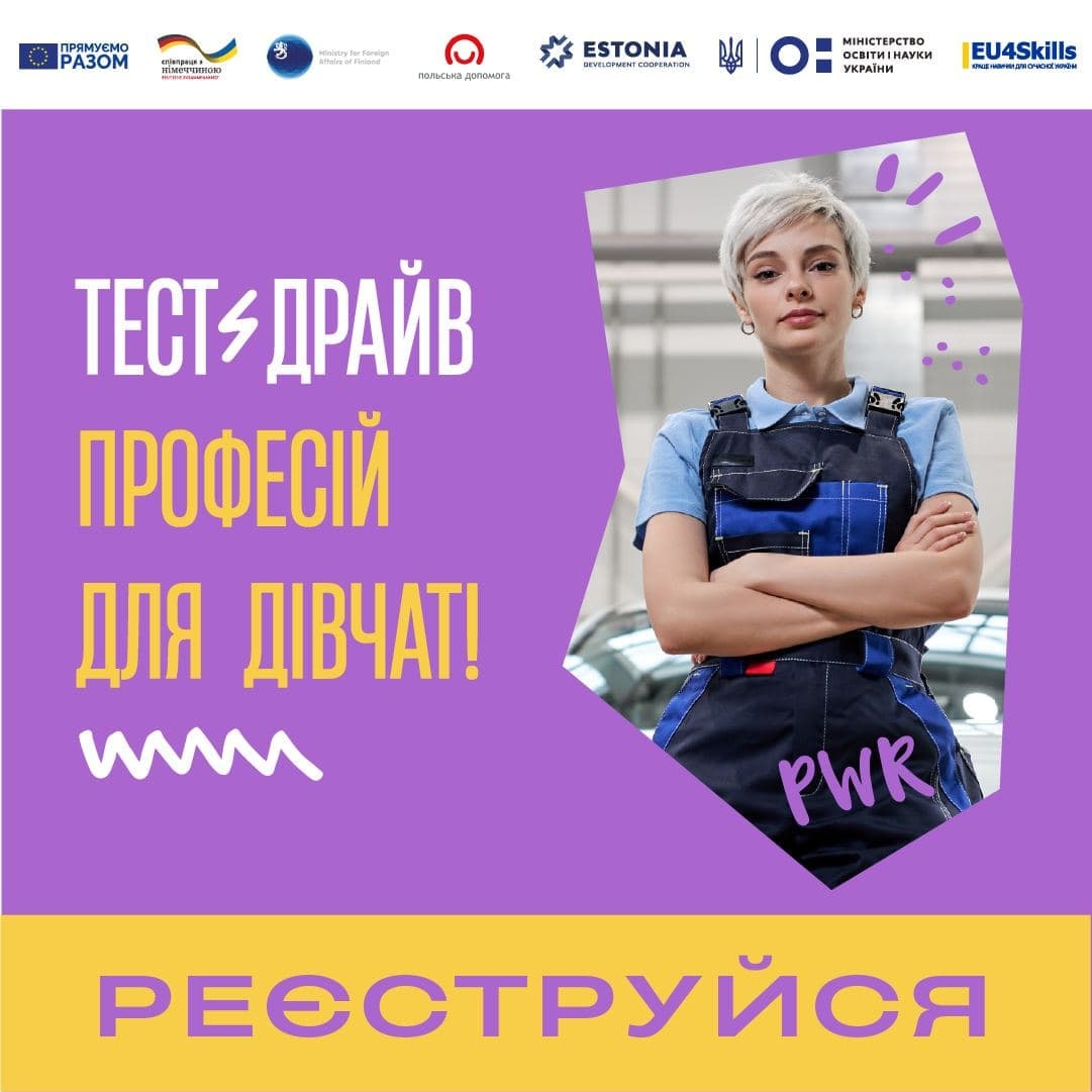 18-22 жовтня відбудеться серія заходів "Тест-драйв професій для дівчат". Їх мета – підвищити обізнаність дівчат та жінок про професії, які можна здобути в закладах професійної освіти. Заходи плануються в онлайн та офлайн форматах.