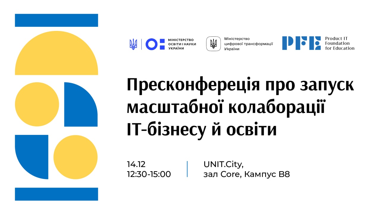 📢 14 грудня 2021 року відбудеться пресконференція, присвячена презентації проєкту «Бізнес іде до університетів», у межах якого стартує курс «Створення та розвиток ІТ-продуктів».