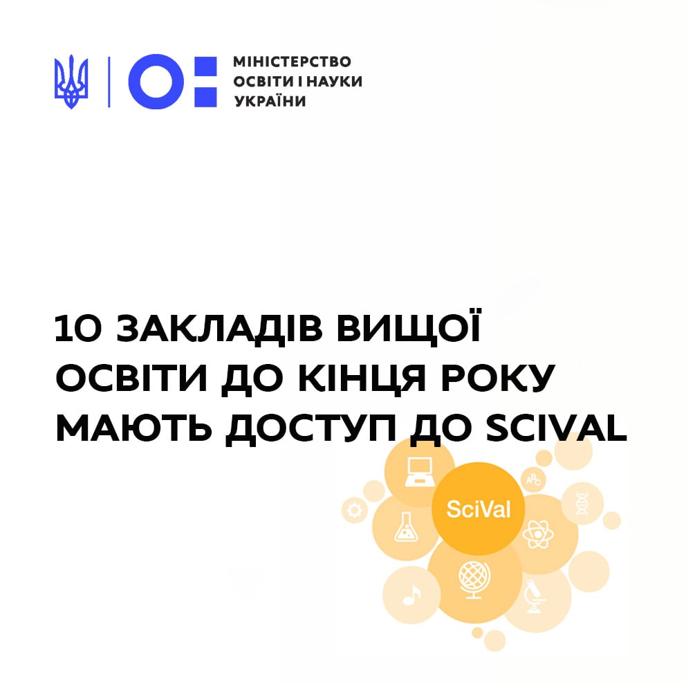 До 31 грудня 2021 року Міністерство освіти і науки забезпечує доступ до аналітичного ресурсу SciVal для десяти закладів вищої освіти України, які у 2021 році увійшли до оновленого рейтингу університетів Times Higher Education.