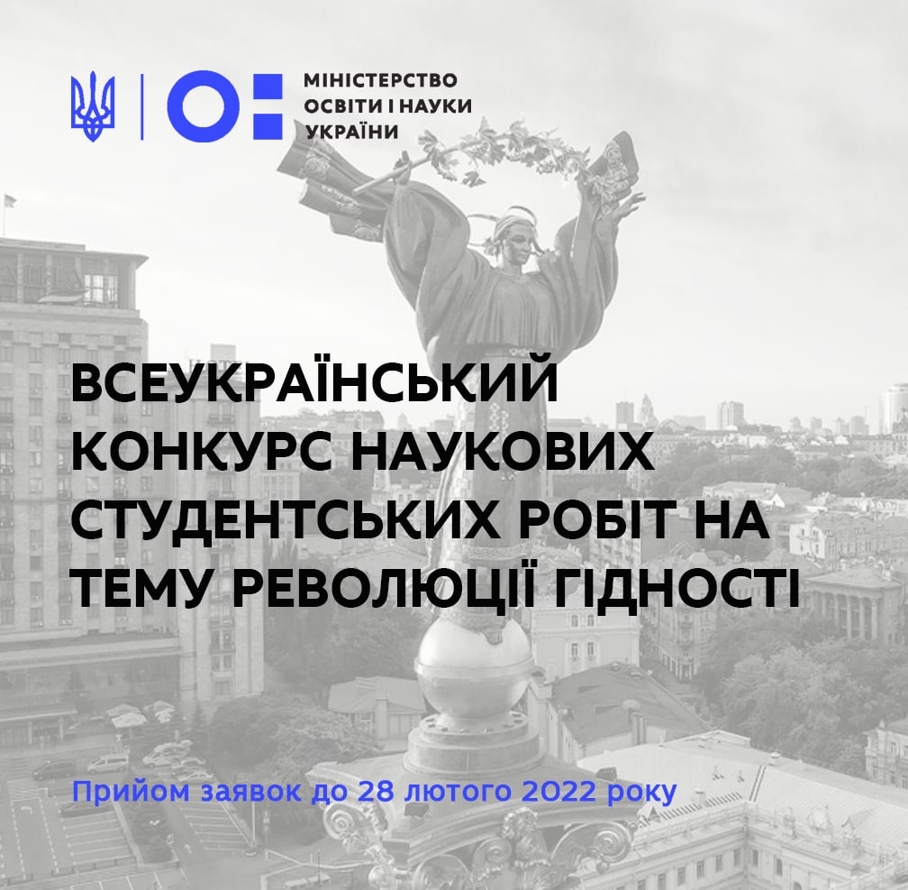 До 28 лютого 2022 року триває прийом заявок на участь у IV Всеукраїнському конкурсі наукових студентських робіт на тему Революції Гідності на здобуття Відзнаки імені Героя Небесної Сотні Сергія Кемського.