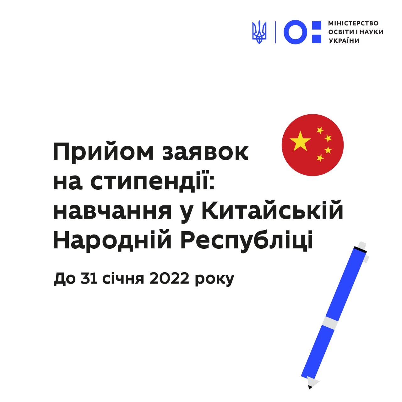 До 31 січня 2022 року відкрито прийом заявок на отримання державної стипендії Уряду Китайської Народної Республіки.