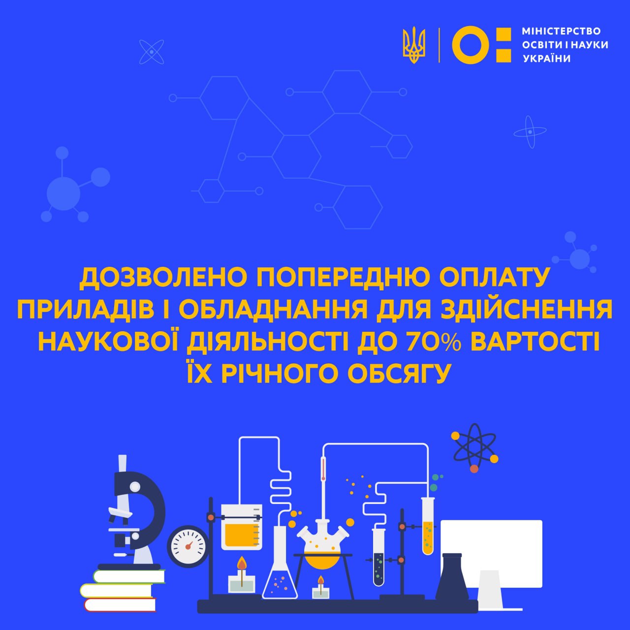22 грудня 2021 року Урядом внесено зміну до пункту 151 постанови Кабінету Міністрів України №641, щодо можливості здійснювати попередню оплату в більшому обсязі й на триваліший термін задля проведення наукової та науково-технічної діяльності. Зміна стосується установ, організацій, закладів вищої освіти та підприємств всіх форм власності, які отримують фінансування з державного бюджету.