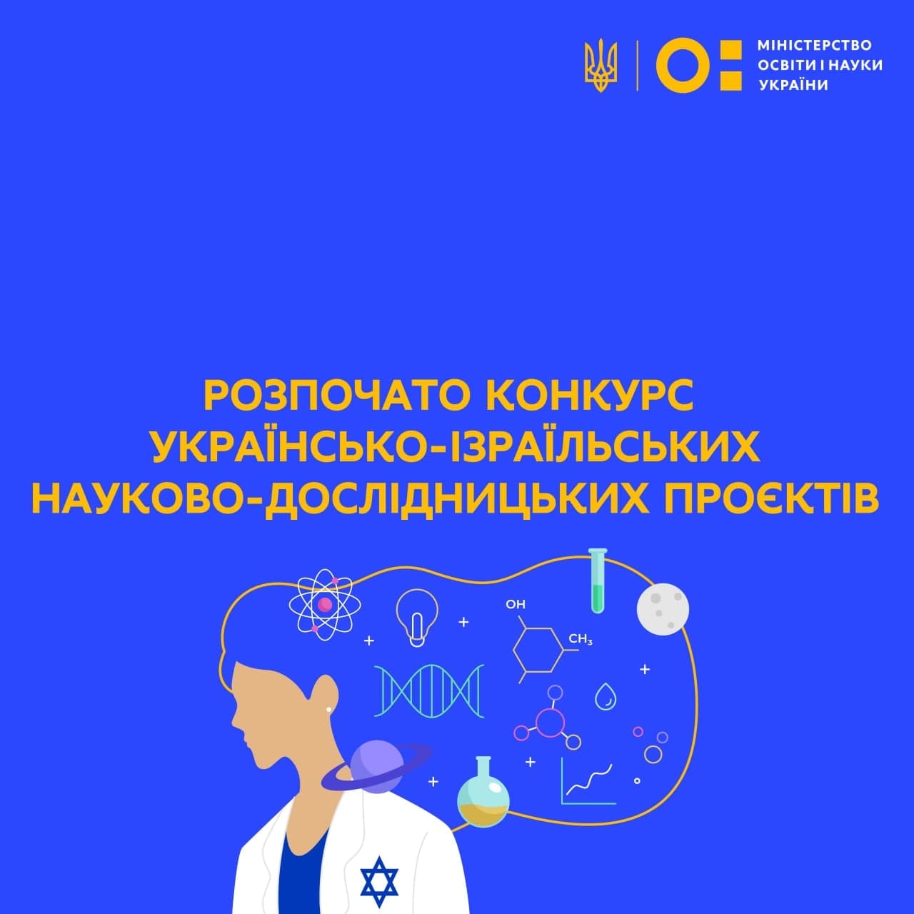 З 11 січня до 15 березня 2022 року Міністерство освіти і науки України та Міністерство інновацій, науки і технологій Держави Ізраїль оголошують конкурс спільних науково-дослідних проєктів на 2022-2023 роки. До участі запрошуються науковці закладів вищої освіти, науково-дослідних установ і підприємств.