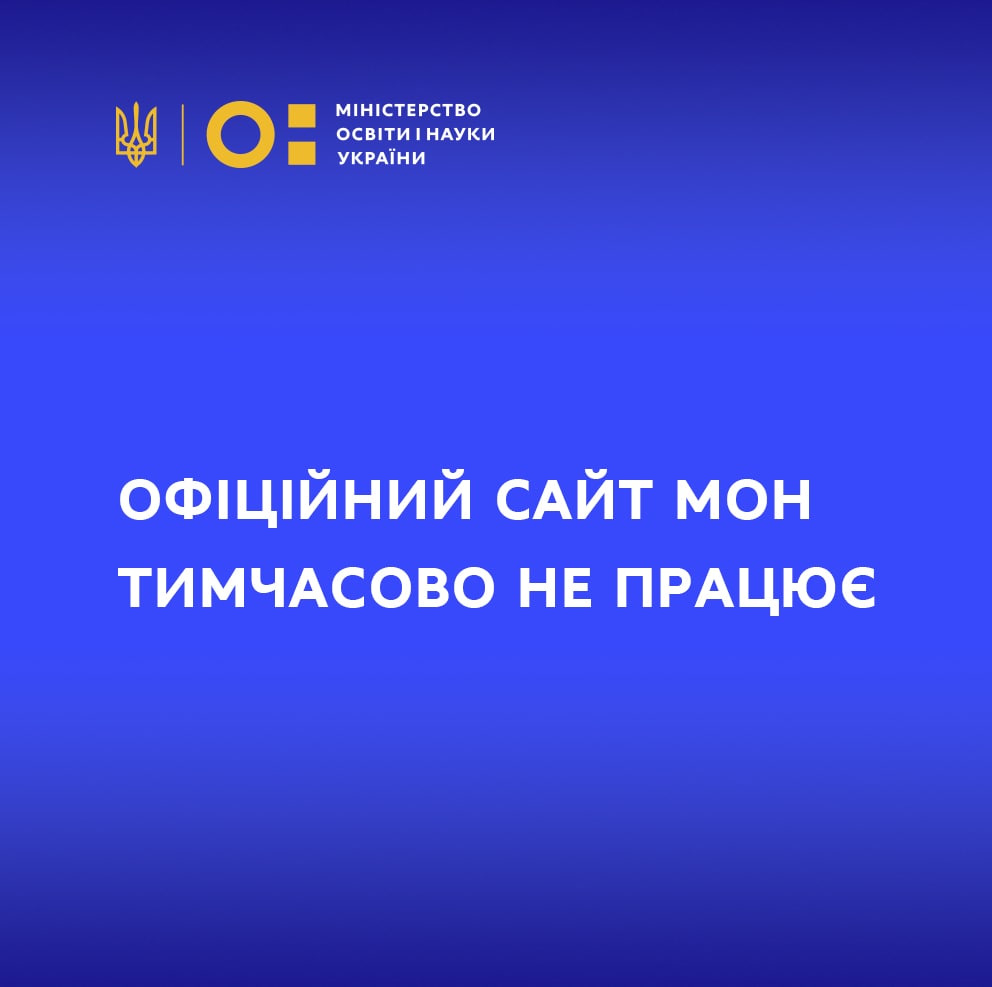 У зв’язку з глобальною атакою у ніч з 13 на 14 січня 2022 року офіційний сайт Міністерства освіти і науки тимчасово не працює.