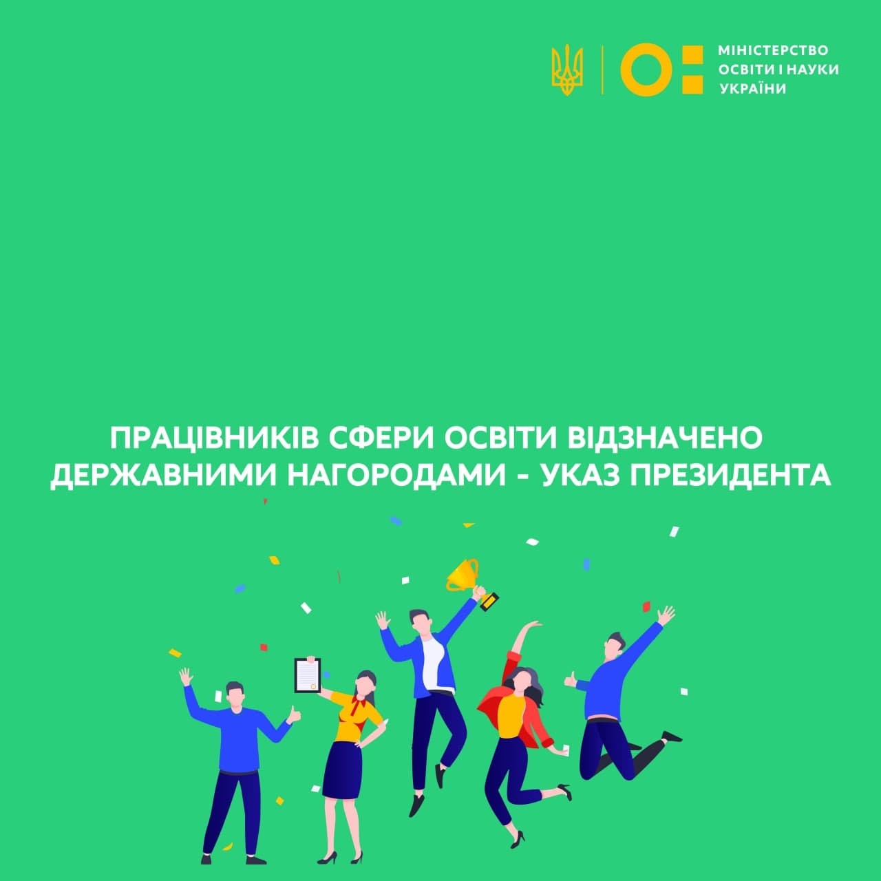 З нагоди Дня Соборності України працівників сфери освіти відзначено державними нагородами. Відповідний Указ Президента оприлюднено 22 січня 2022 року на офіційному сайті.