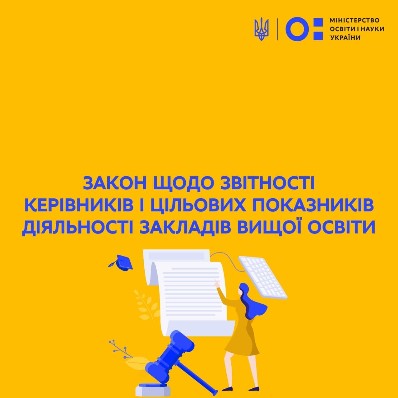 25 січня 2022 року Верховною Радою України прийнято у другому читанні зміни до Закону України «Про вищу освіту» щодо оприлюднення щорічного звіту керівника закладу вищої освіти та цільових показників діяльності закладу.