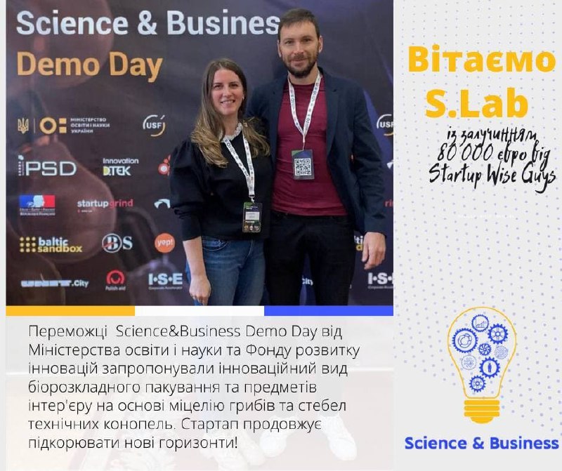 Український стартап S.Lab зі створення біорозкладного пакування з технічних конопель і грибного міцелію отримав від акселераційної програми Wise Guys Sustainability 80 тис. євро.