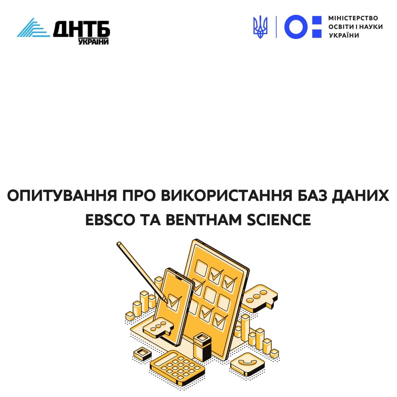 📢 Державна науково-технічна бібліотека України до 2 березня 2022 року проводить опитування науковців про досвід користування базами даних EBSCO та Bentham Science. З вересня до грудня 2021 року тестовий доступ до баз надавався працівникам закладів вищої освіти та наукових установ.