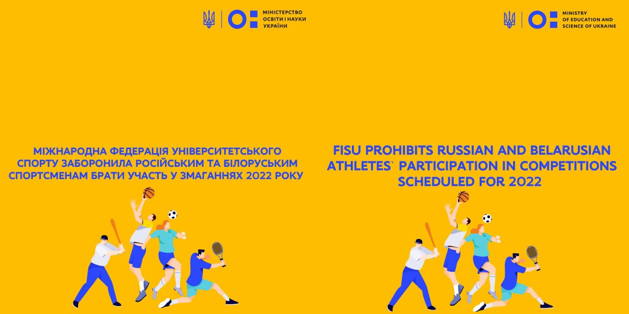 Комітет повідомив про рішення заборонити російським і білоруським спортсменам брати участь у змаганнях і заходах FISU (як мінімум до кінця 2022 року).