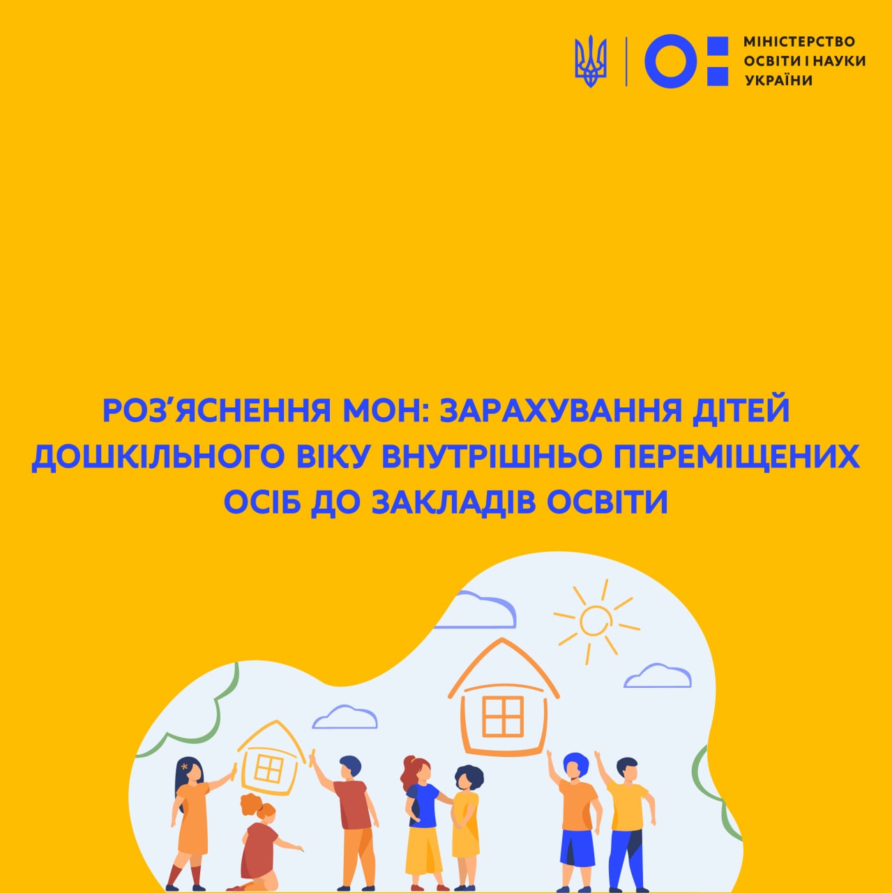 Відповідне роз’яснення направлене керівникам департаментів (управлінь) освіти і науки обласних, Київської міської державних (військово-цивільних) адміністрацій із проханням сприяти зарахуванню дітей дошкільного віку внутрішньо переміщених осіб до закладів освіти.