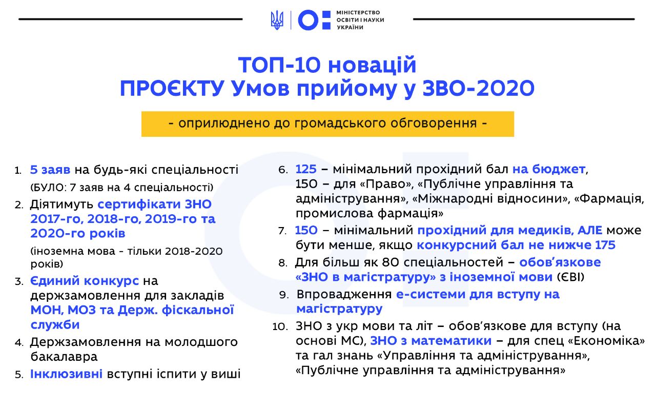 На сайті вже розміщено текст проєкту Умов прийому до вишів. А тут є ТОП-10 новацій, закладених у документ.👇