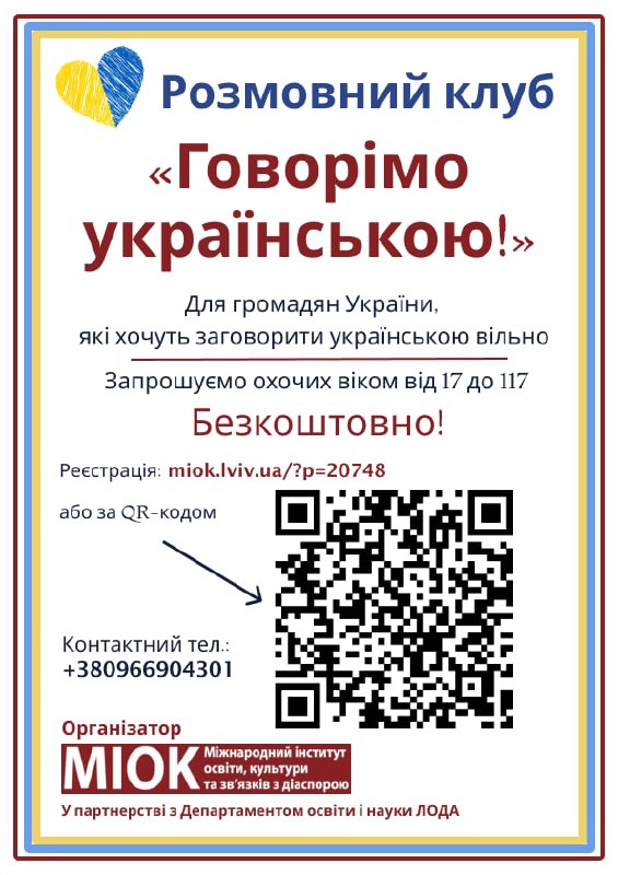 Запрошуємо вас у розмовний клуб «Говорімо українською!»